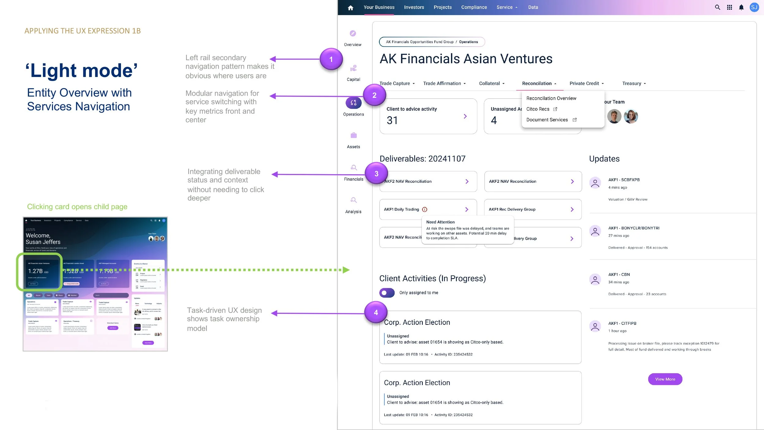Citco One was gaining momentum and new ideas were moving quickly, but the design had not fully caught up. As the product grew, different screens started to look and behave differently. This made it harder to build new features without adding confusion.