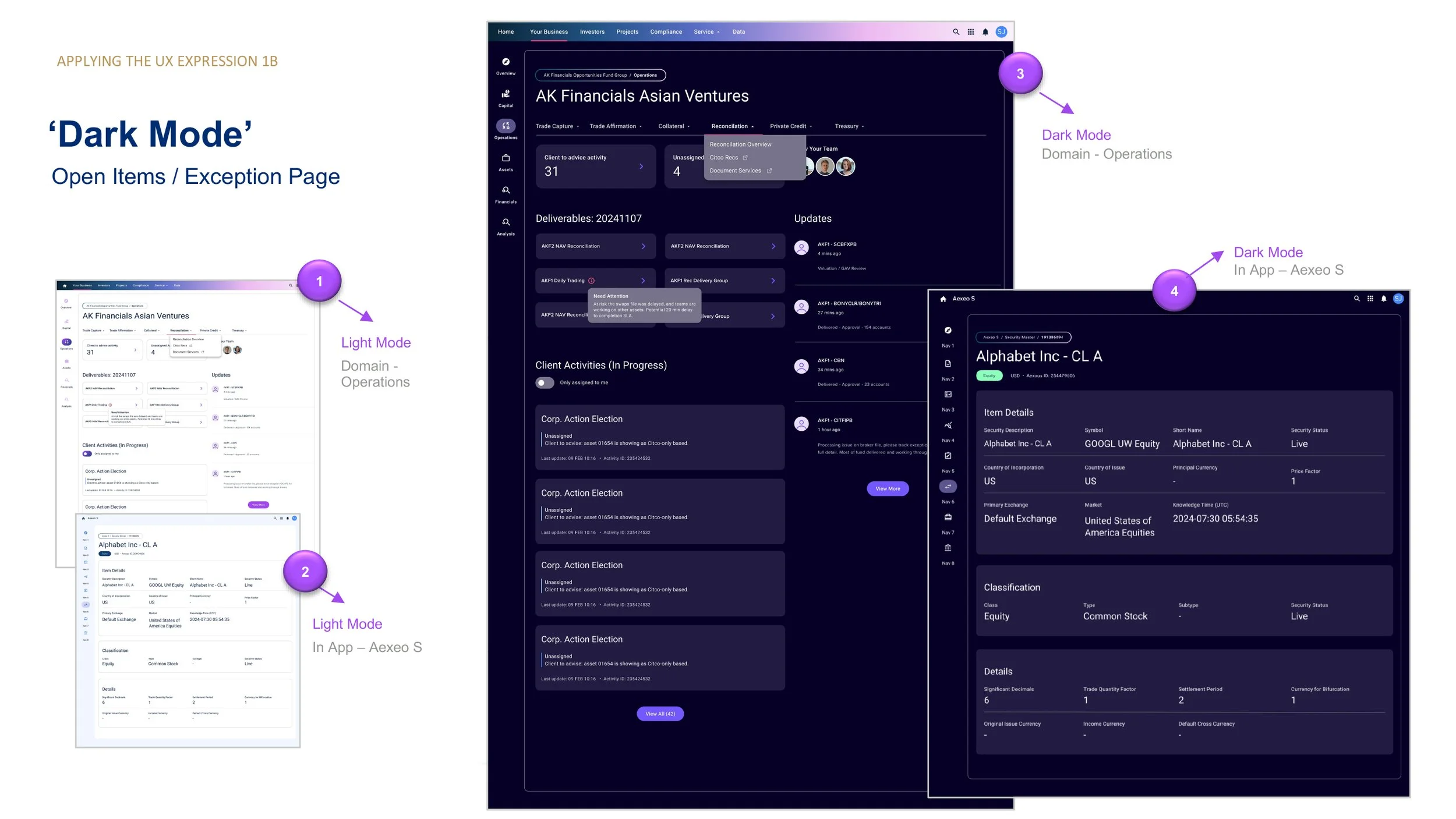 We explored multiple visual directions and refined them into clear, usable concepts. These were translated into high fidelity designs, showing how the product works across real Citco One workflows.