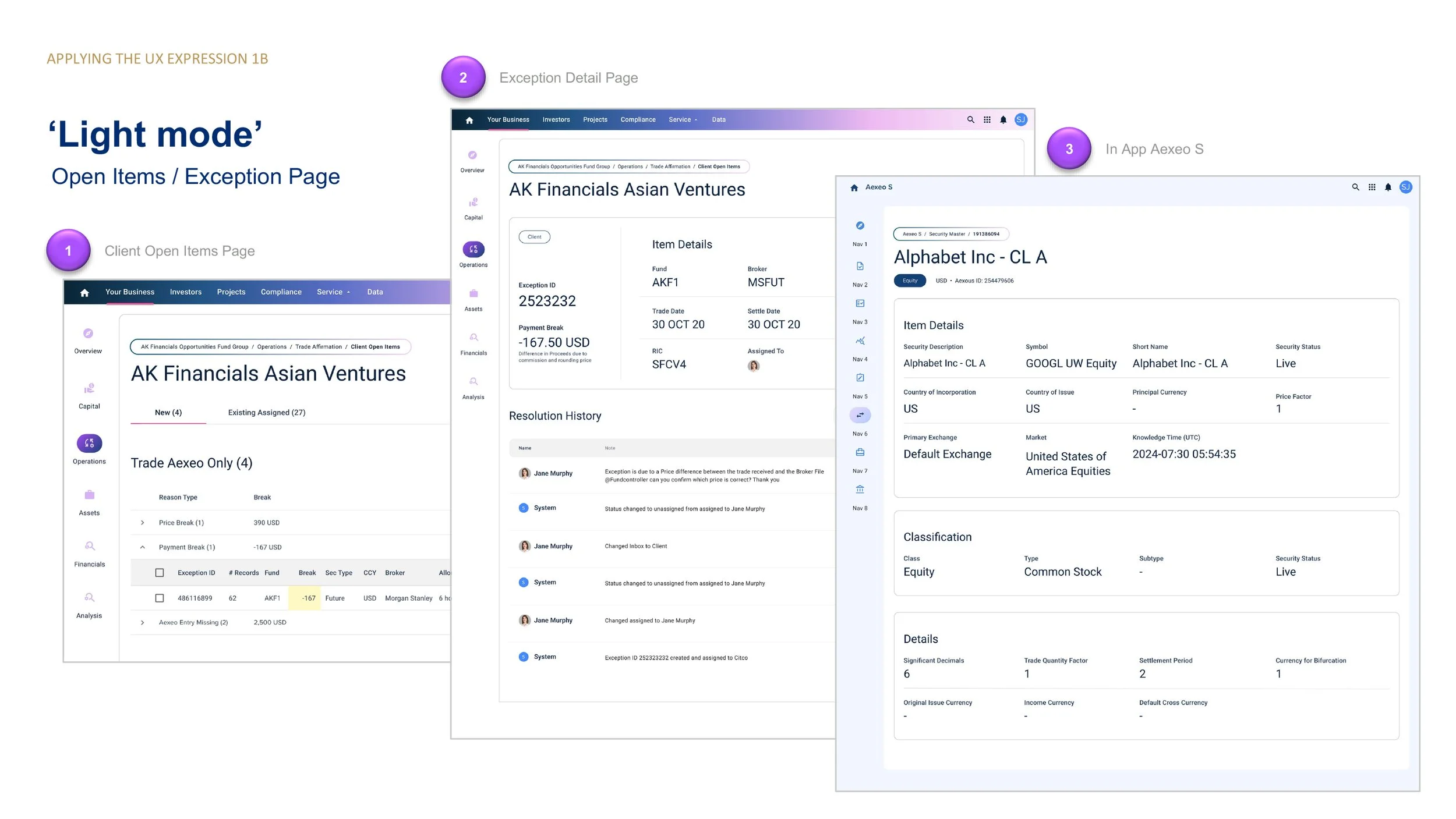 We applied the design system to real product workflows, such as exception handling and open items. This helped validate how the visual system performed in complex, data-heavy scenarios.