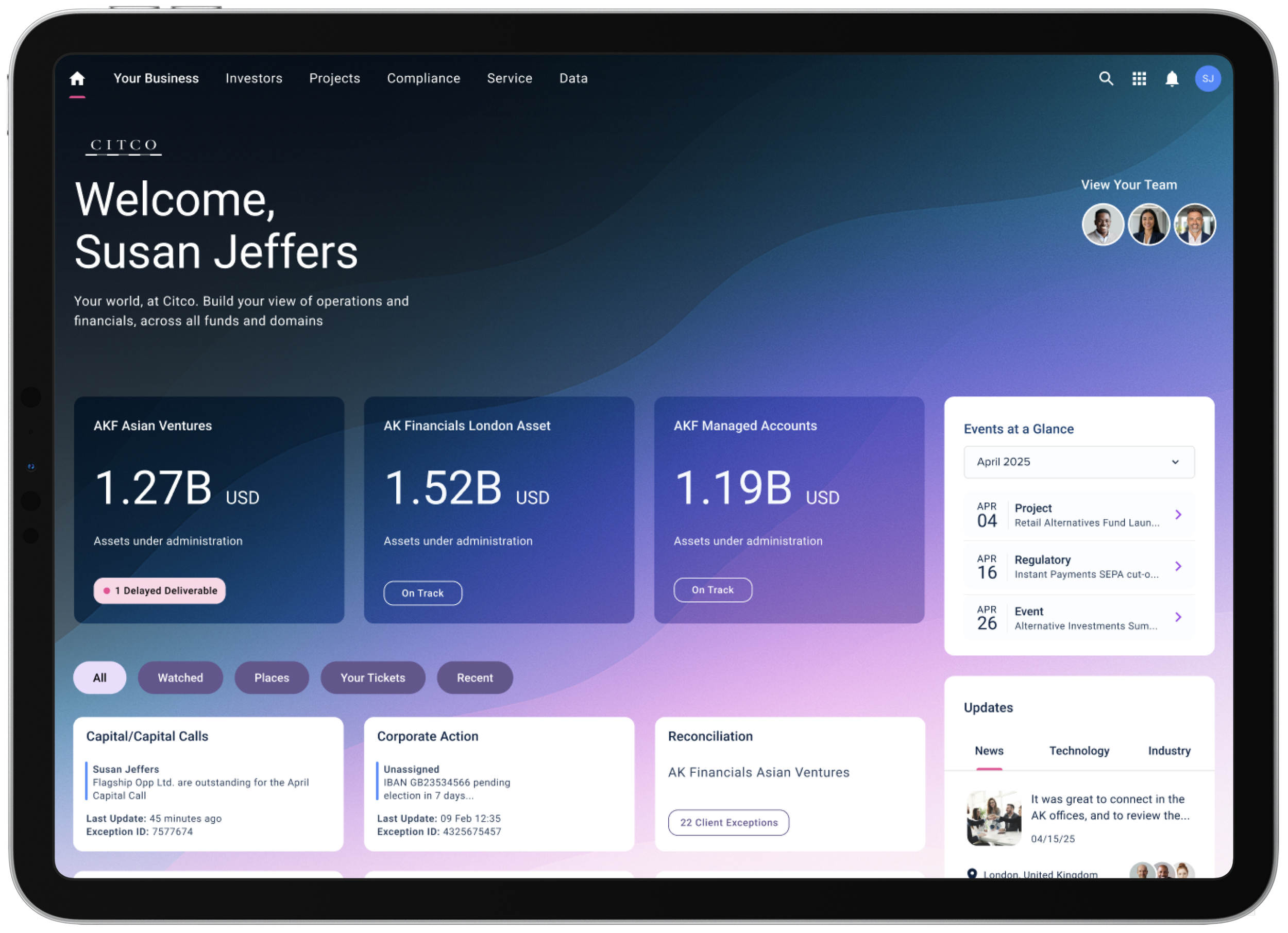 Citco One is a digital platform built for private markets clients to manage fund operations, view reports, and stay connected through a single experience. The product was already in progress, but the team needed help bringing clarity and direction to the UI so it could scale.